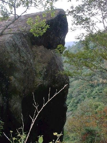 下山は、正面登山道を下る。途中、風穴、岩登りのゲレンデでもある明神岩を見に行く。明神岩のあたりで突然空が暗くなってきてパラパラと雨が降り出したが、すぐ止んでまた晴れ間が出てきた。